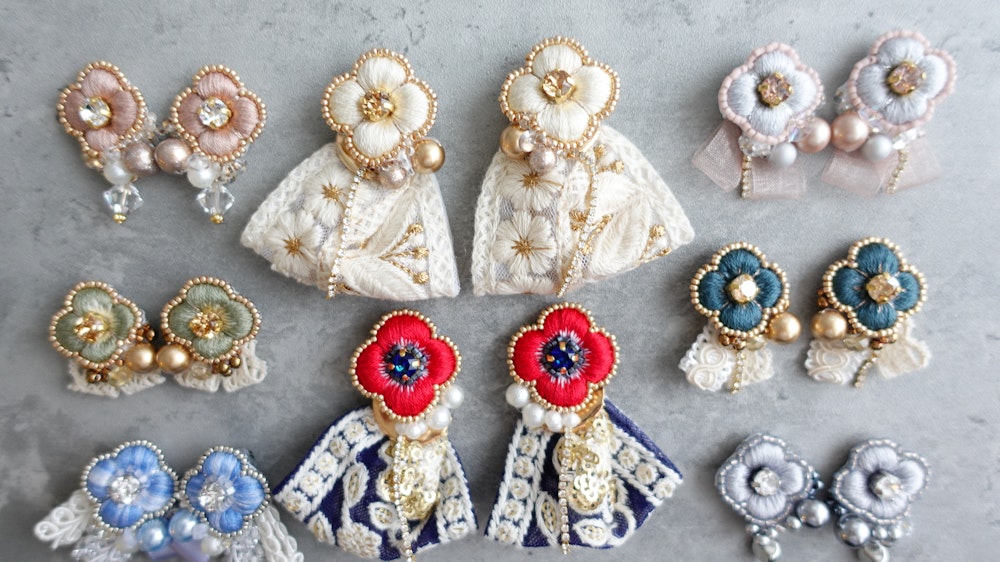 ふっくらキラキラとしたお花のアクセサリーが作れる!~初めての刺繍アクセサリーレッスン~
