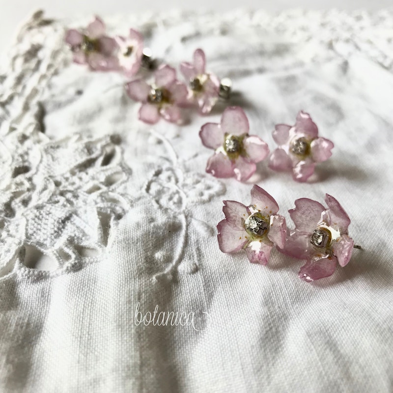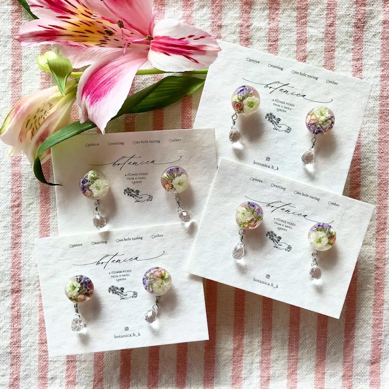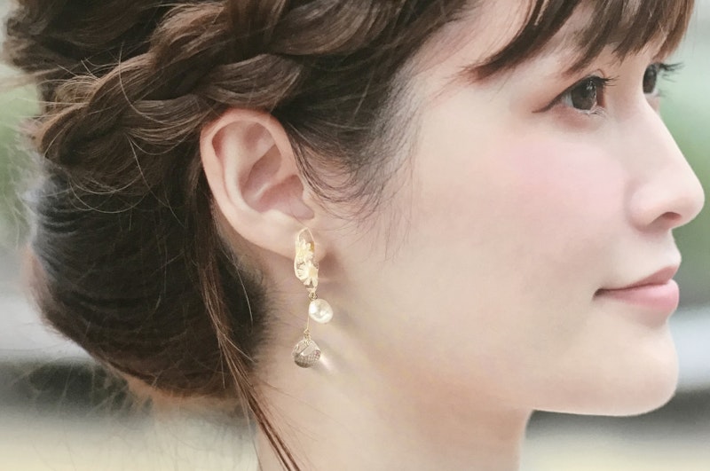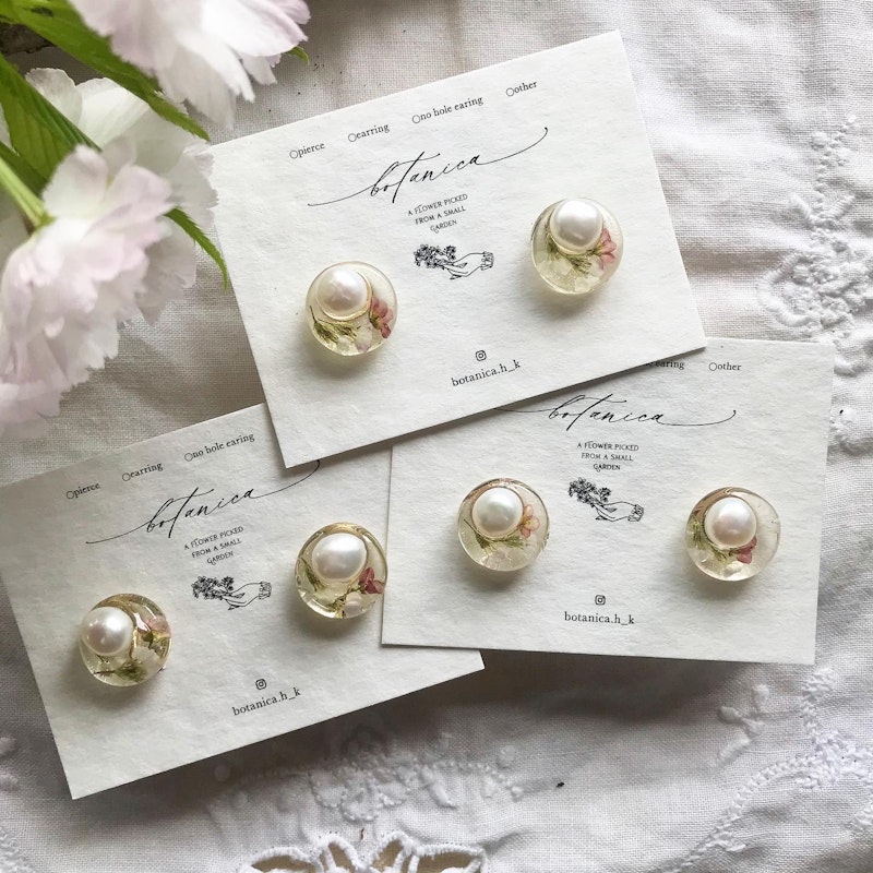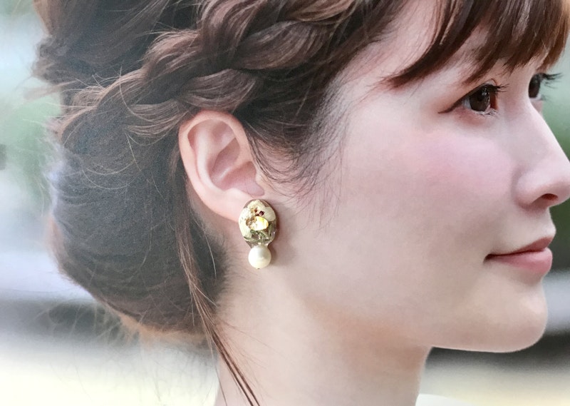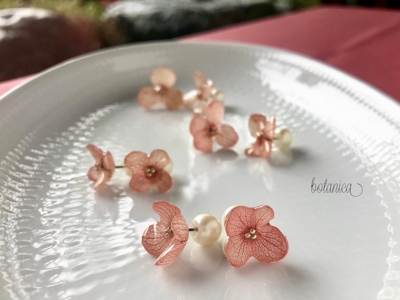 ハナカンザシと淡水パールの耳飾り