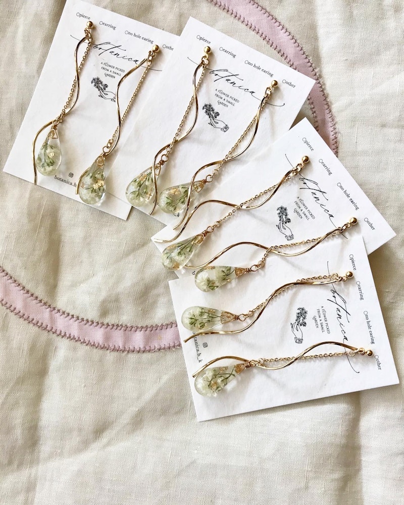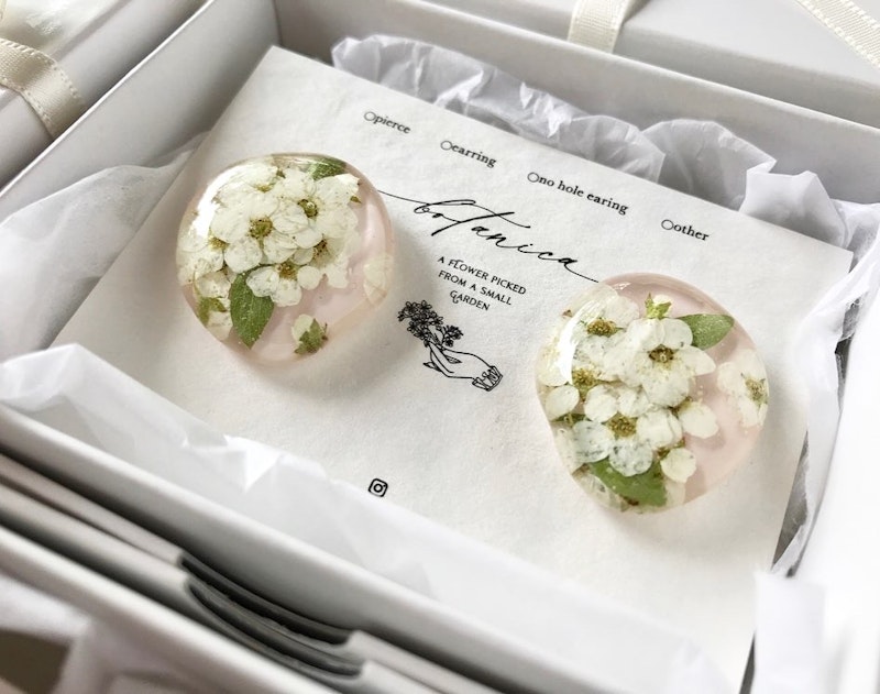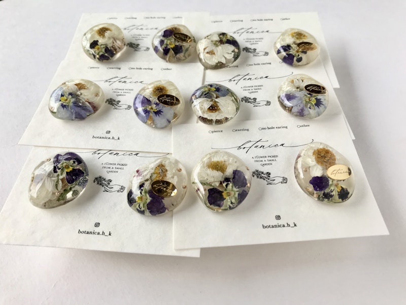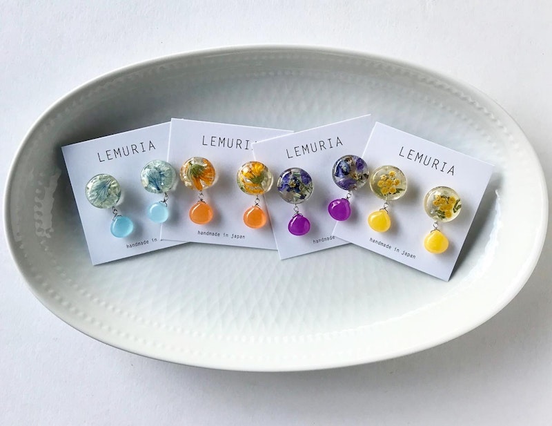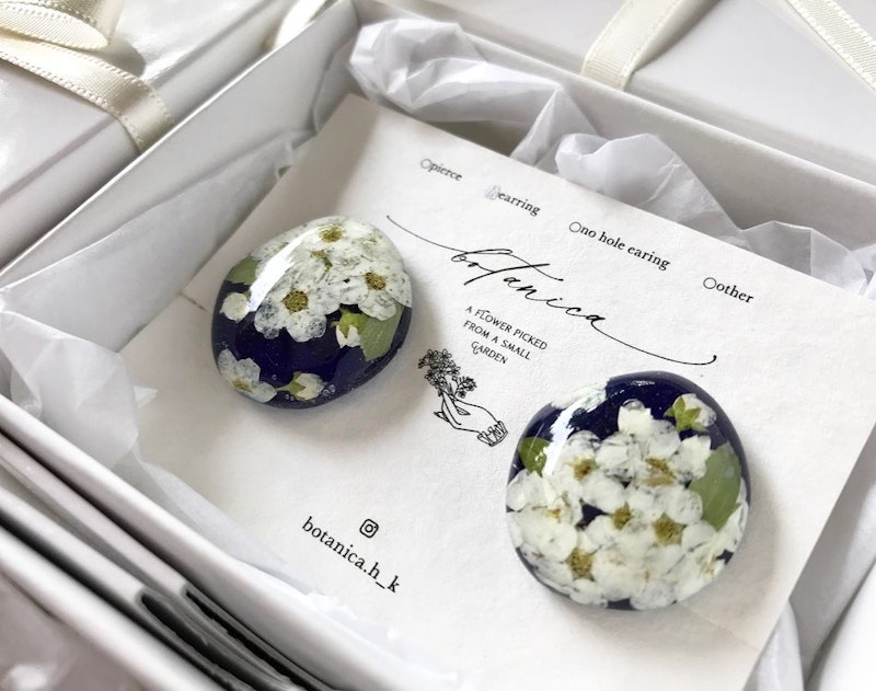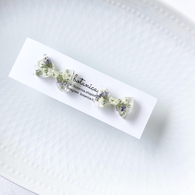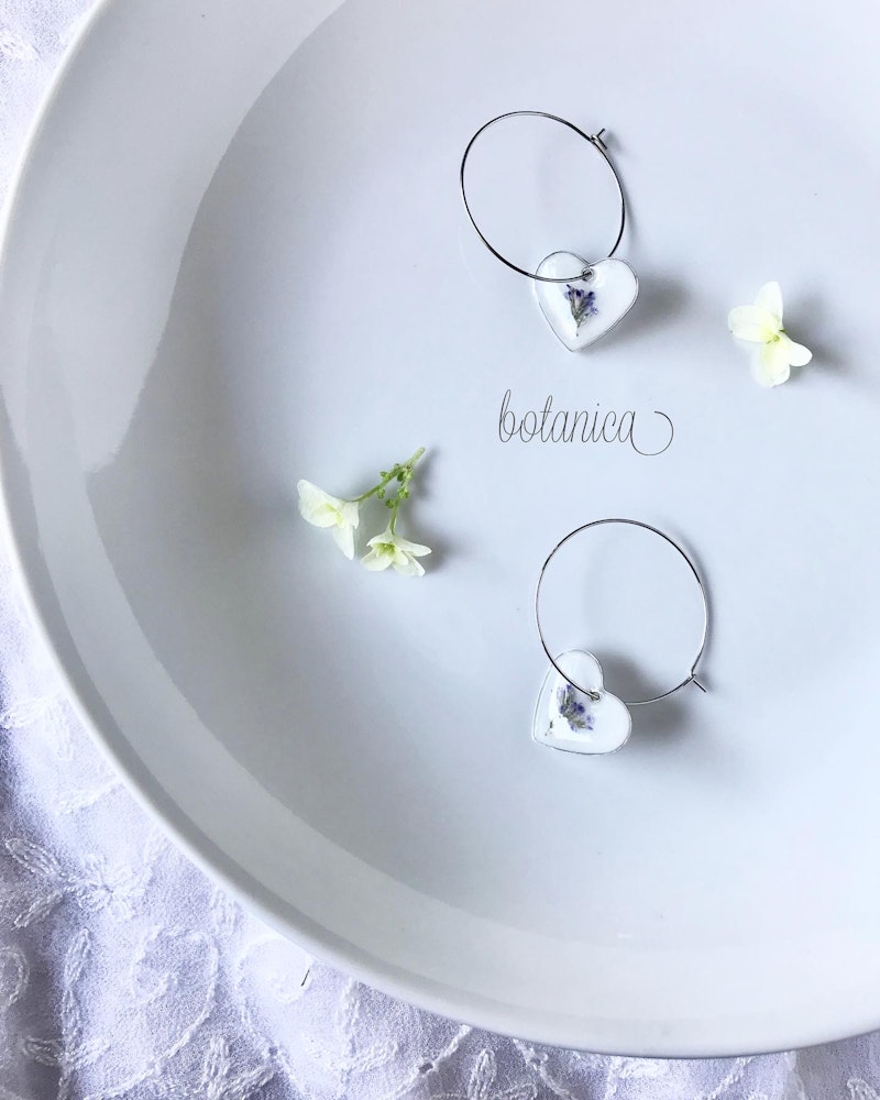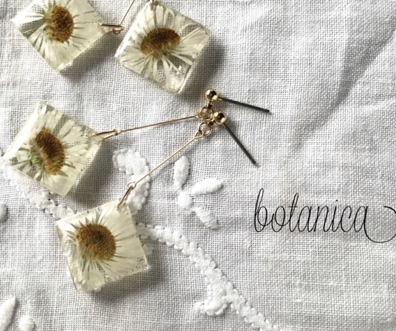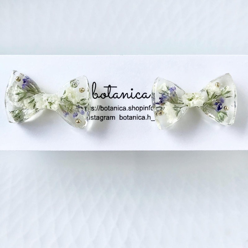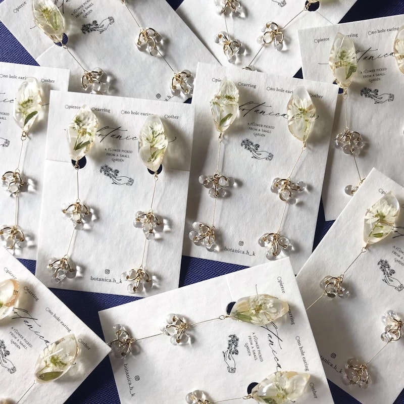 白い小花ユーフォルビアとチェコビーズの耳飾り