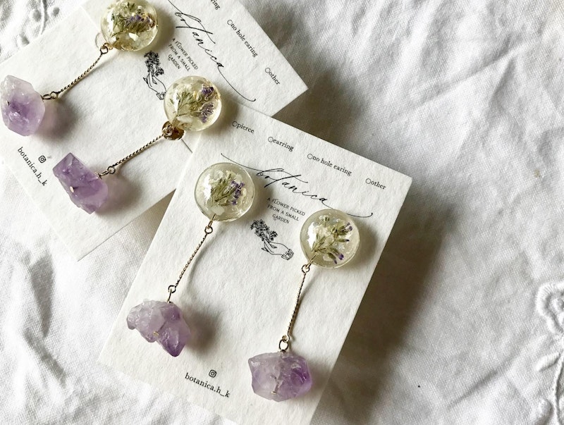 ローズアメジストとお花の耳飾り