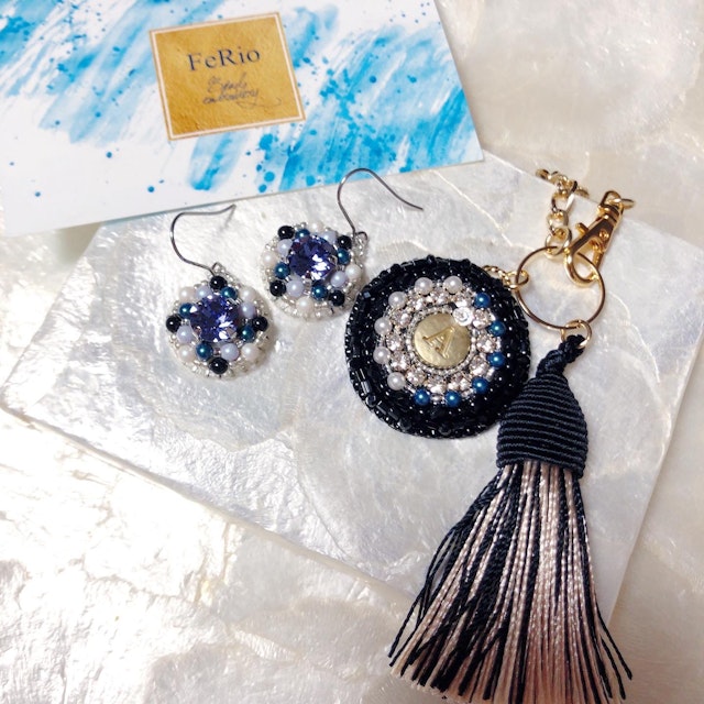 バッグチャームは人気のあるブラックカラーで、タッセルも数色の中でお好きなものをご選択いただきました。