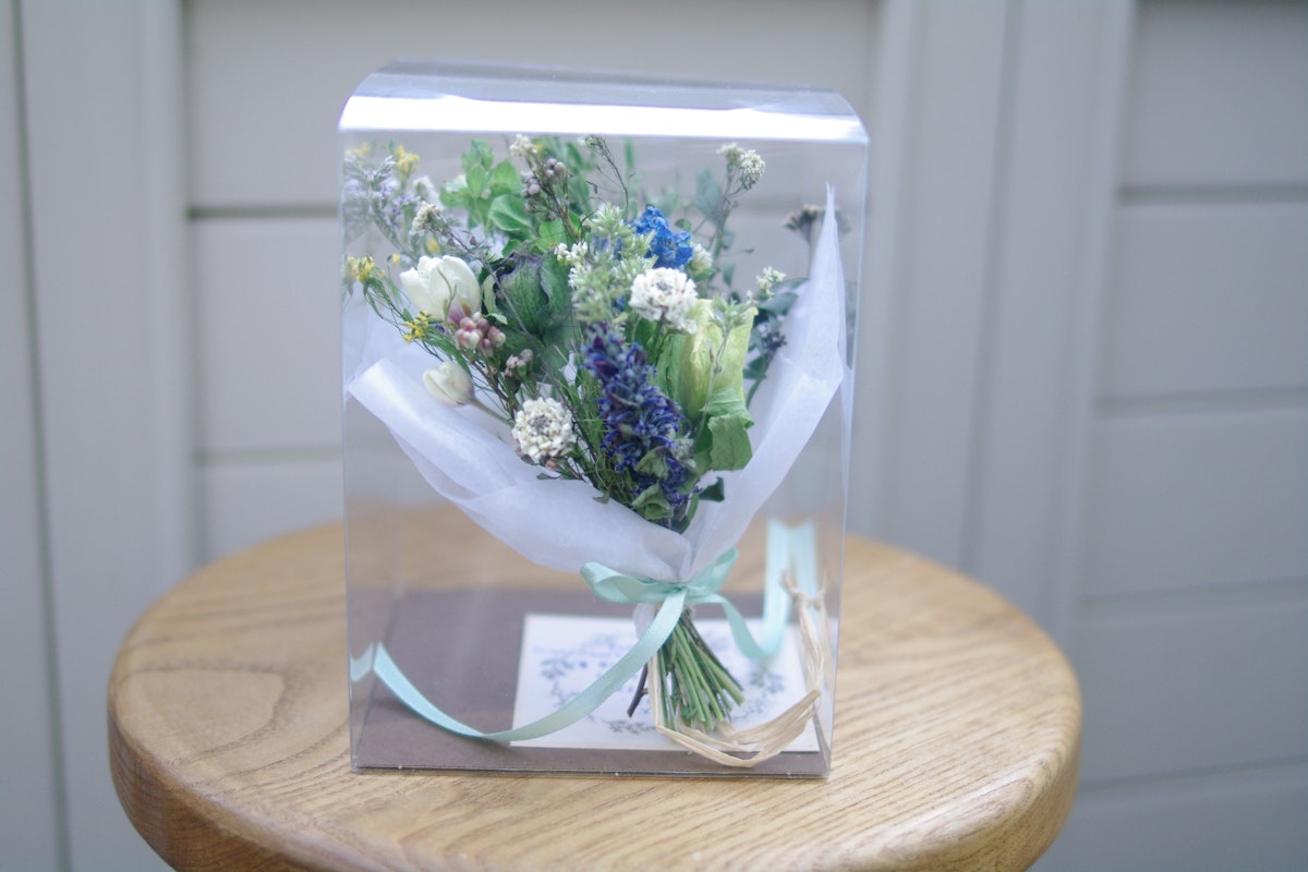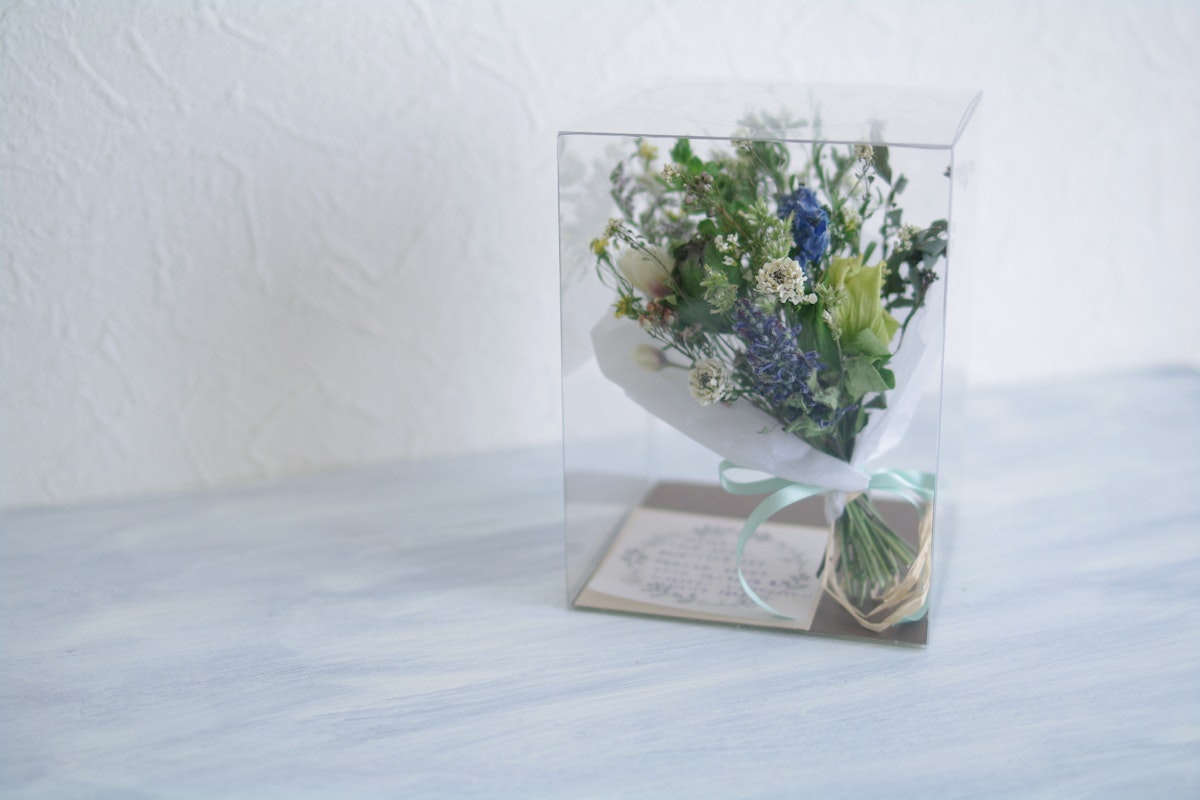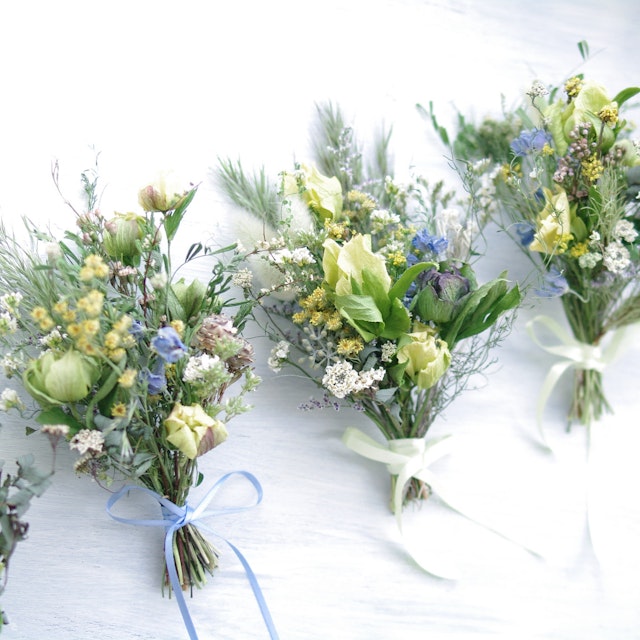 ブルーやホワイト、グリーンを基調にした花材で