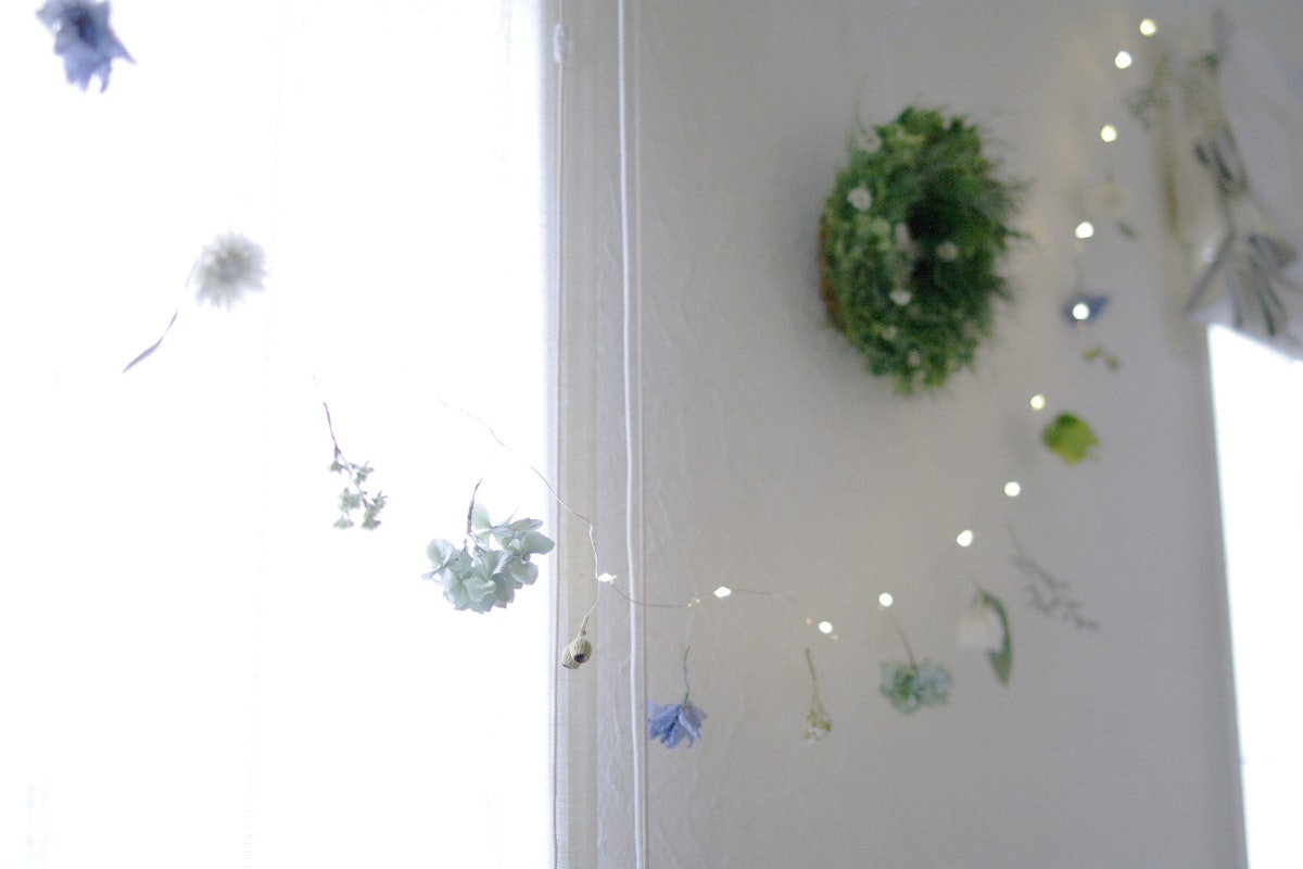灯るガーランドや草花ゆうびんに