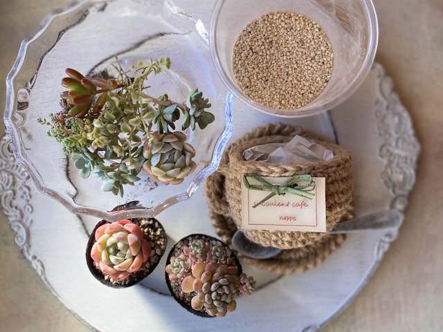 多肉寄せ植え・まるでデザートの様な麻紐カップ寄せのやり方