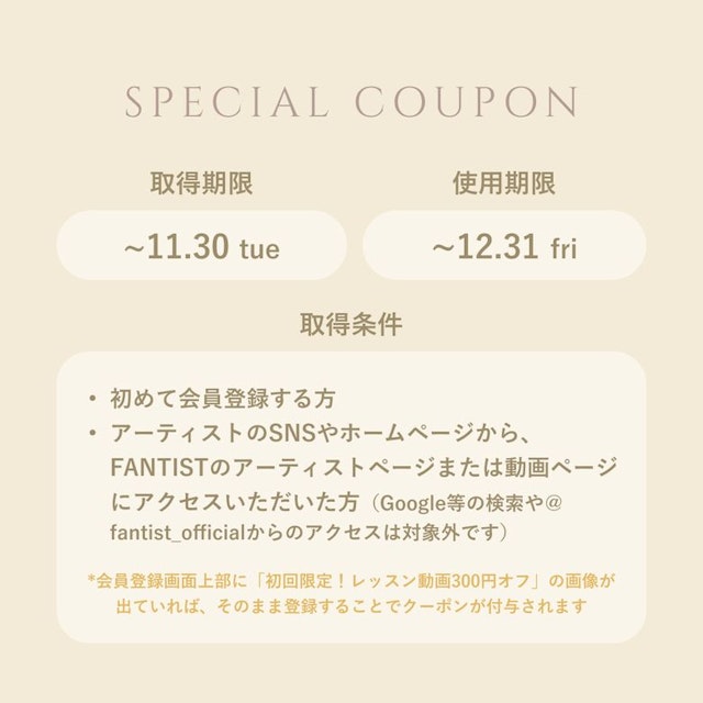 ◆ 動画レッスン【300円オフ】のお知らせ ◆
