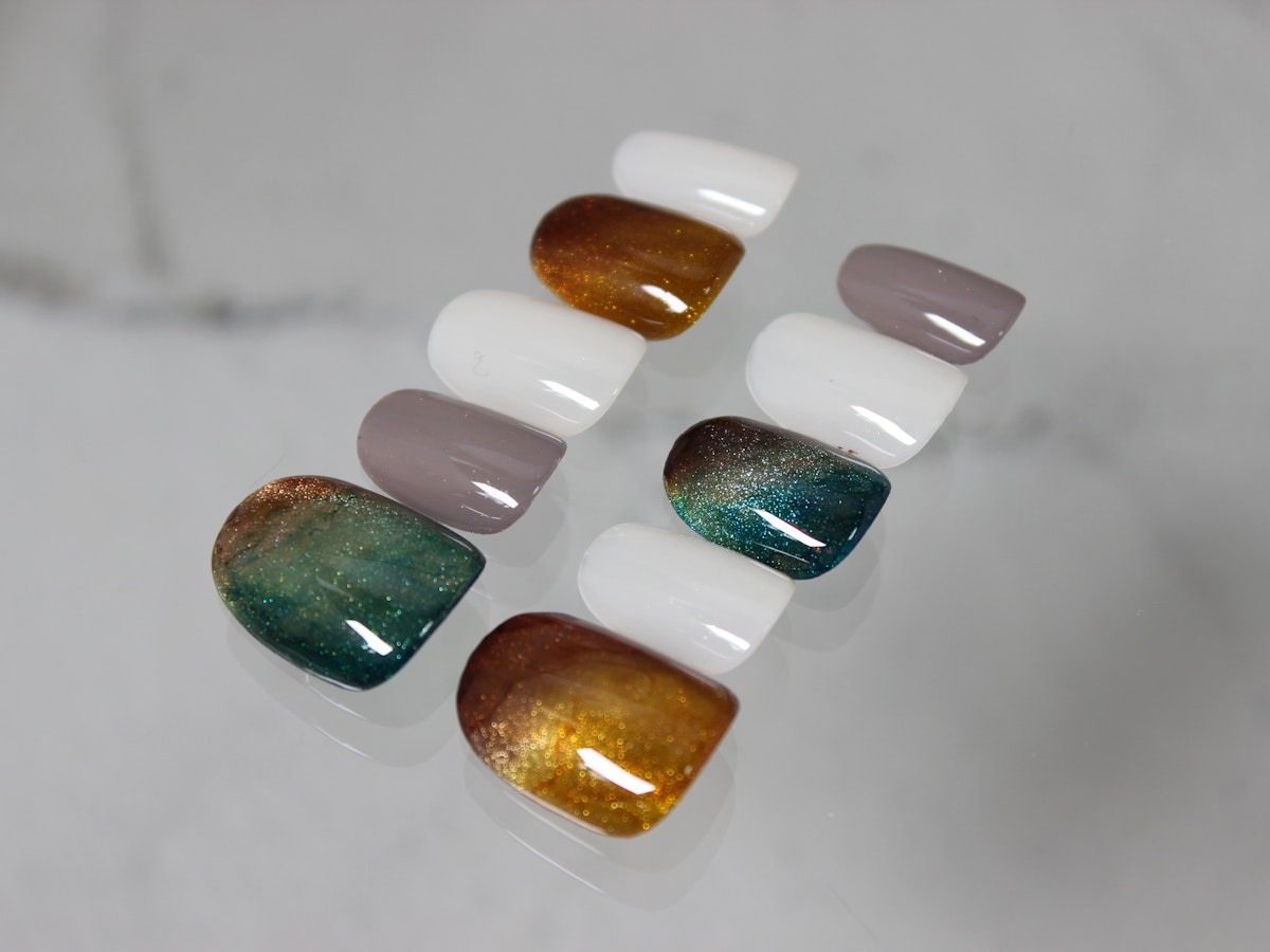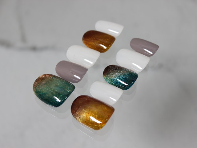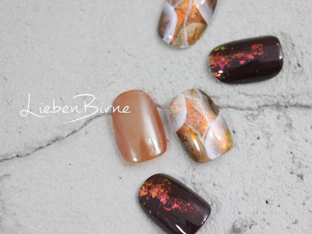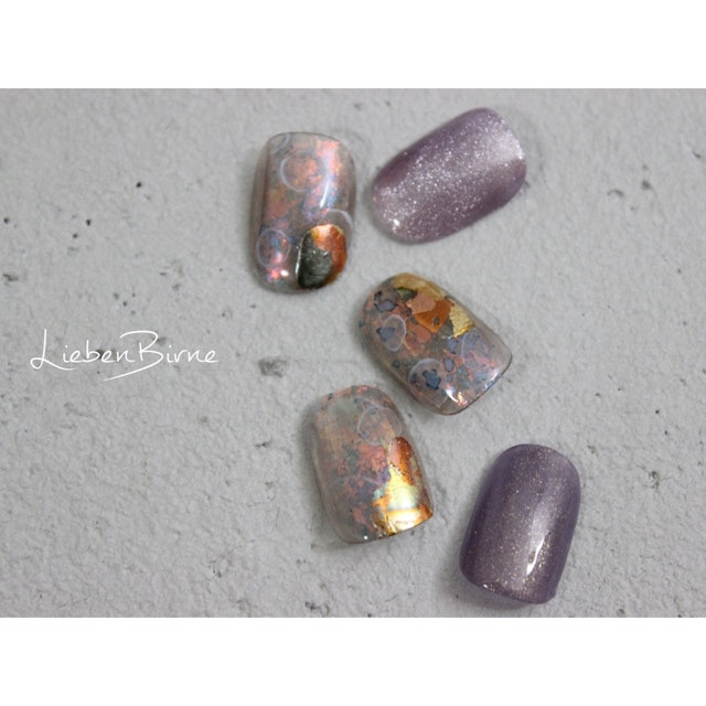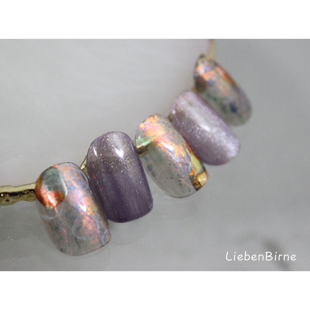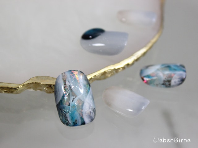 箔押しアート、ミストアート、たらしこみアートとたくさんの技法を盛り込んだ、超絶ニュアンスアートとなっております!