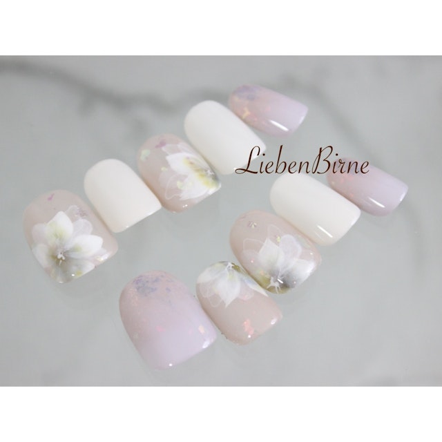 繊細に重なり合う花びらがポイント!普段アートにも、ブライダルにもピッタリなフラワーデザインとなっております♪