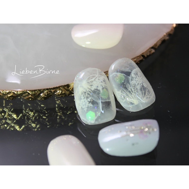 透明感を活かすようにアレンジした花びらに雪の結晶を忍ばせました!とても繊細な仕上がりとなりました!ご興味ある方は、ぜひ♪