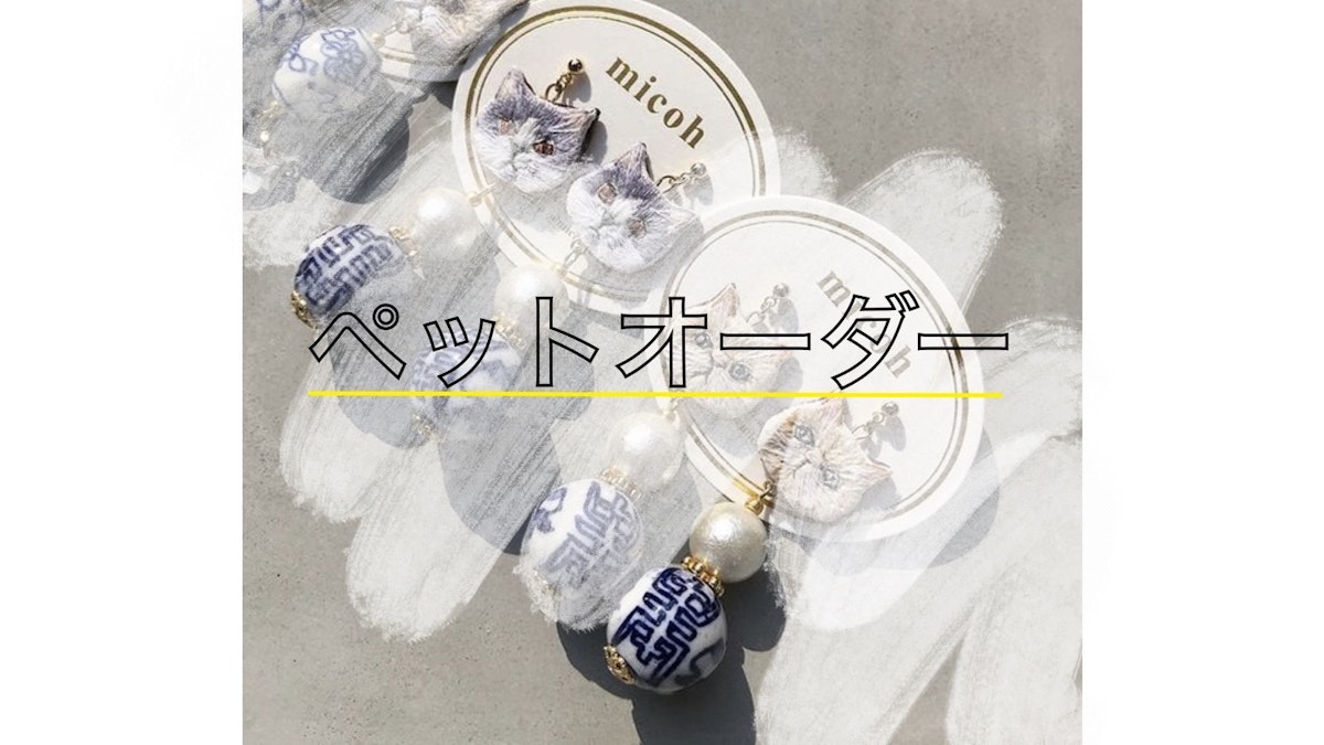 ペットオーダー青絵陶器ラウンドドロップピアス