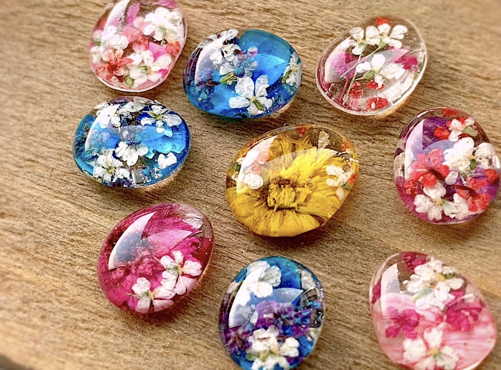 『お花の石』水晶にお花が閉じ込められた様なオリジナルパーツ作り♪