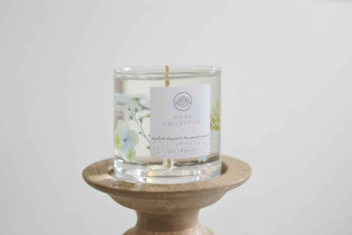 この季節にぴったりの涼し気な透明感×お花の可愛さ引き立つキャンドルです。
