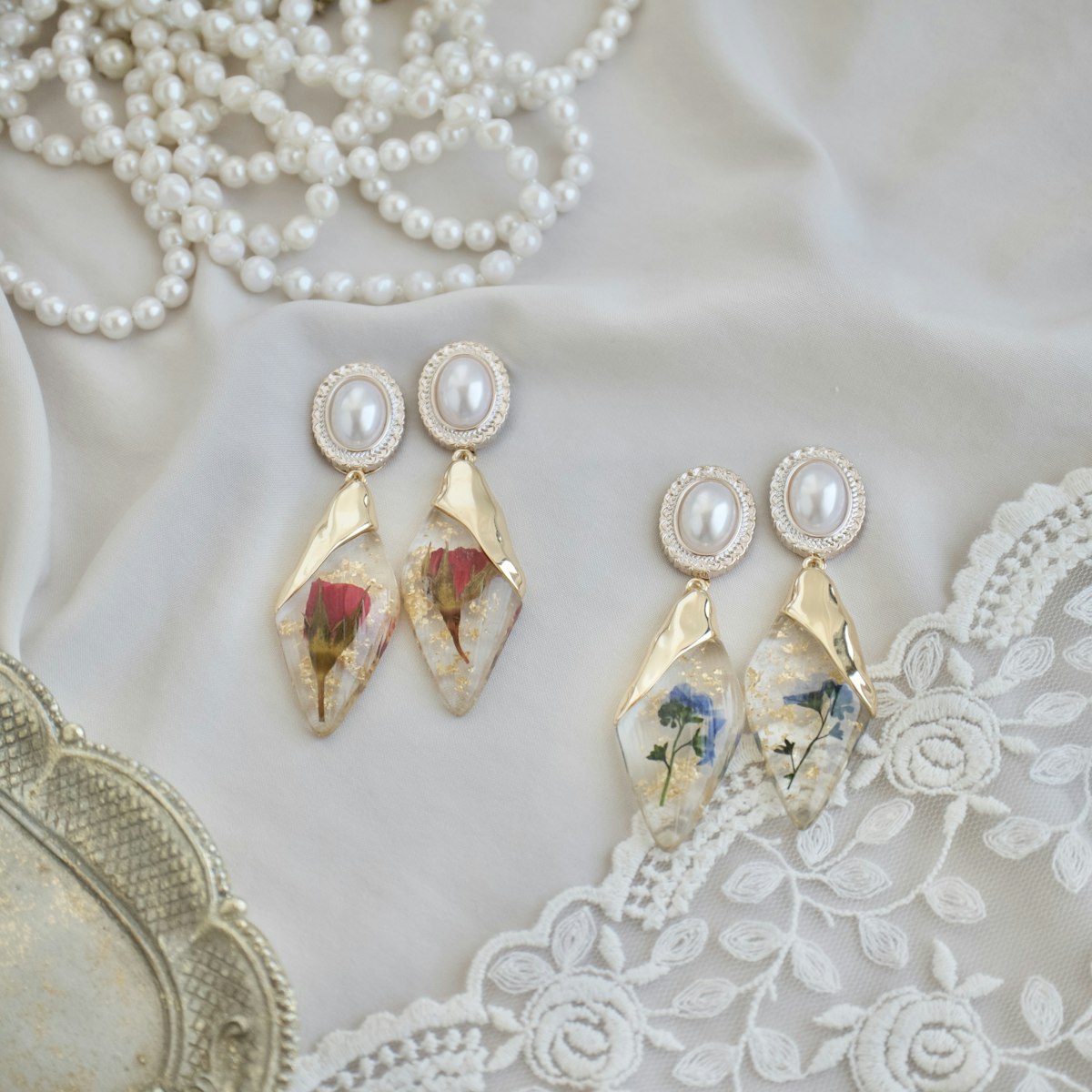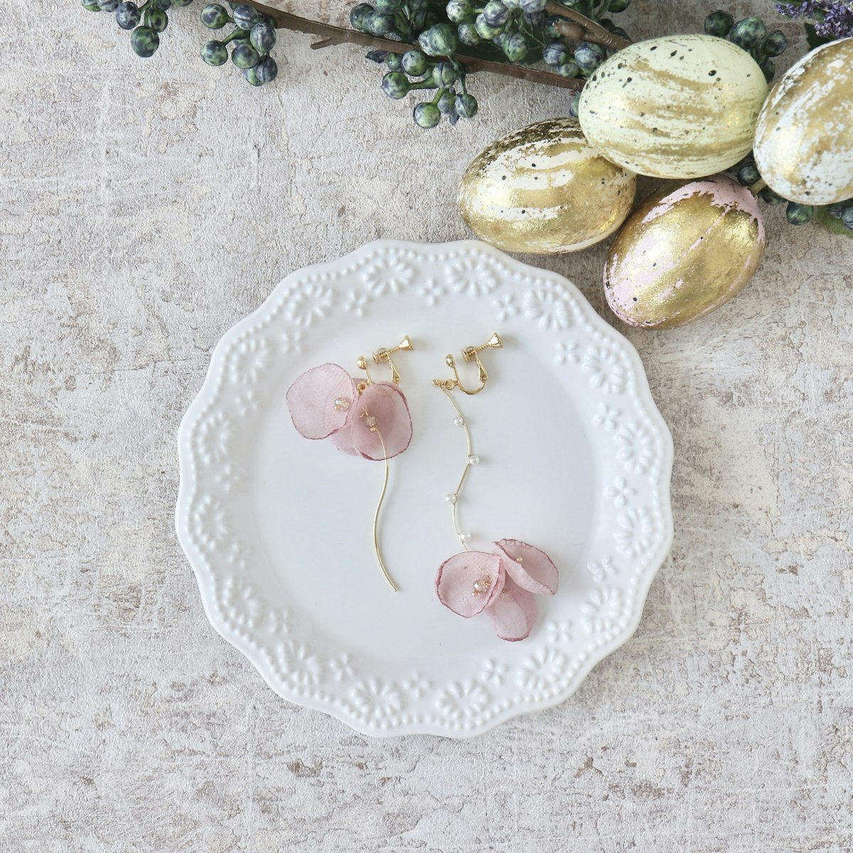 デザイン違いの蝶々のイヤリング(ピアス)とシンクロコーデもオススメです。