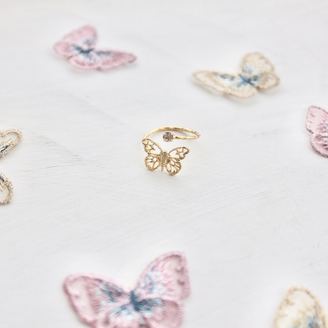 よく見るとハートがたくさんの可愛い蝶々🦋のフォークリングです。