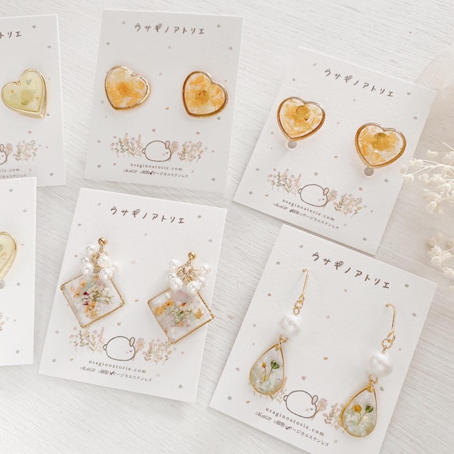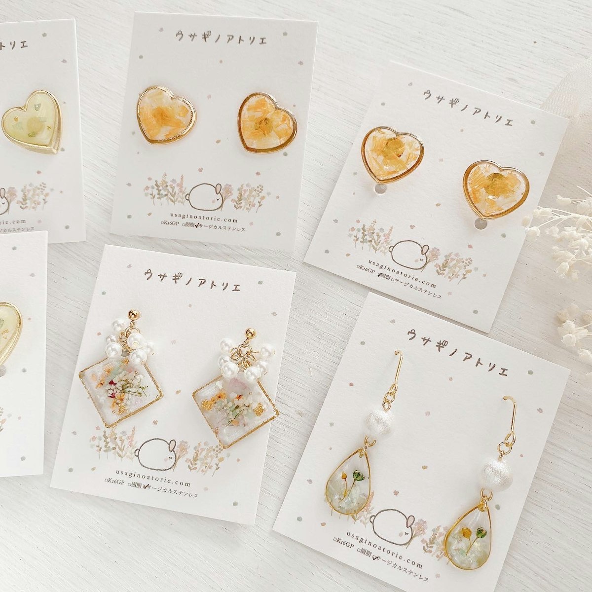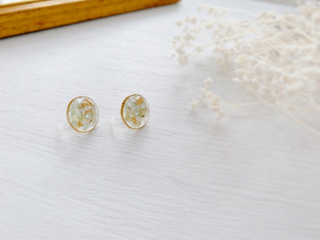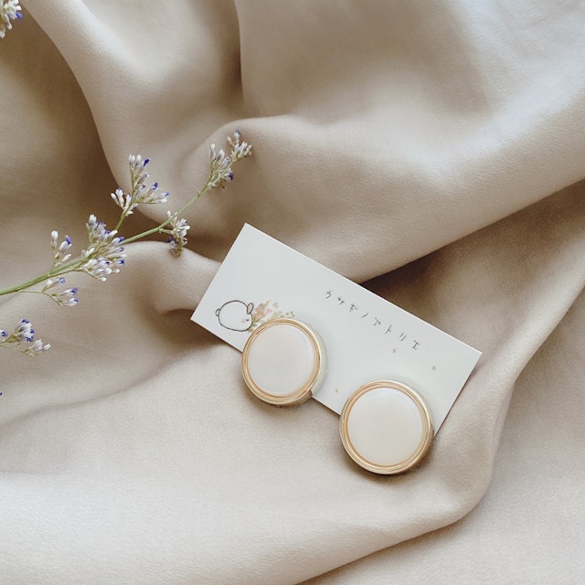 写真のような、耳たぶサイズのぺったんこ耳飾りをお届けいたします☆
