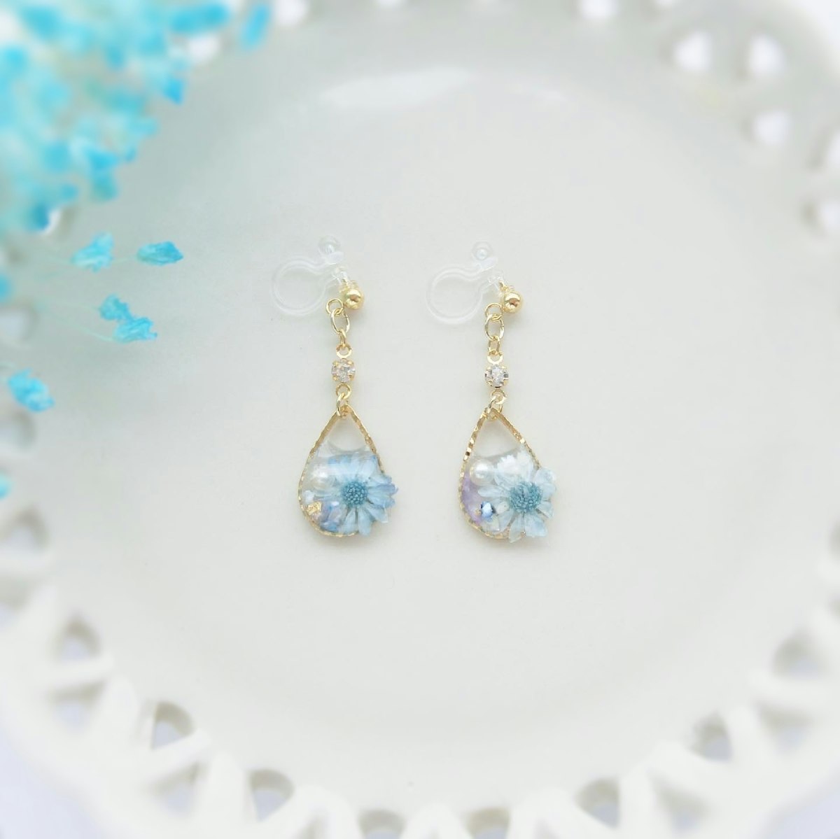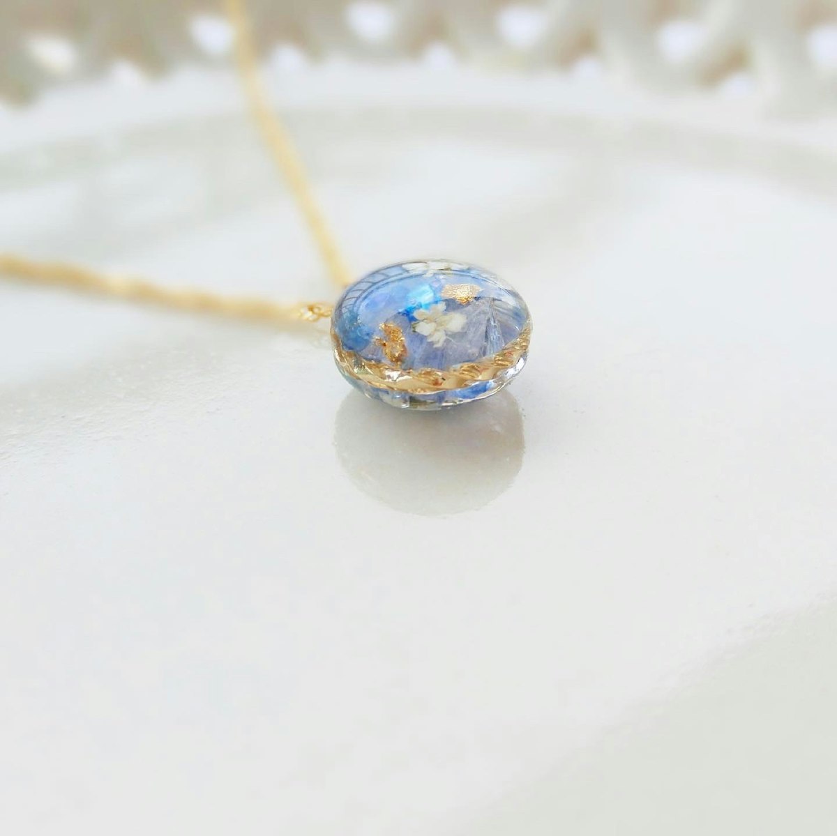 綺麗な青色系のお花をぎゅっとつめこんだ、綺麗なアクセサリーが登場します ⸝⸝⸝