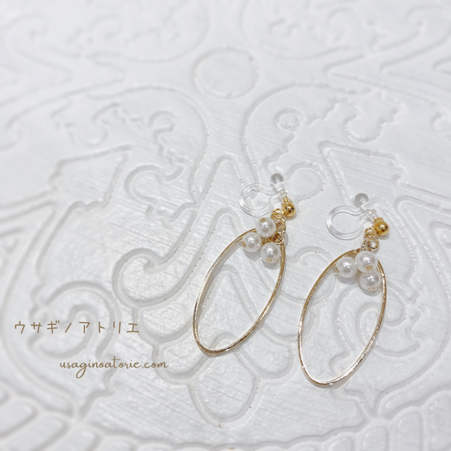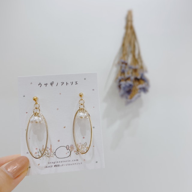 輪っかとパールが揺れるシンプル耳飾りをお届けいたします𑁍.°