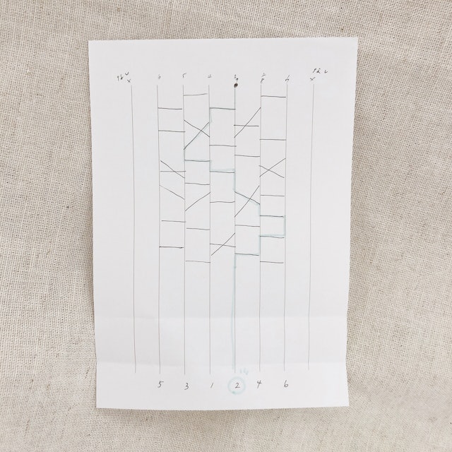今回はランダムに番号を並べ、今日は2月12日なので、2×12で24本を書いて、12日なので左から12個数えました♫