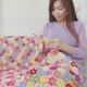 ブランケットと同じ毛糸でお花モチーフを繫げました。