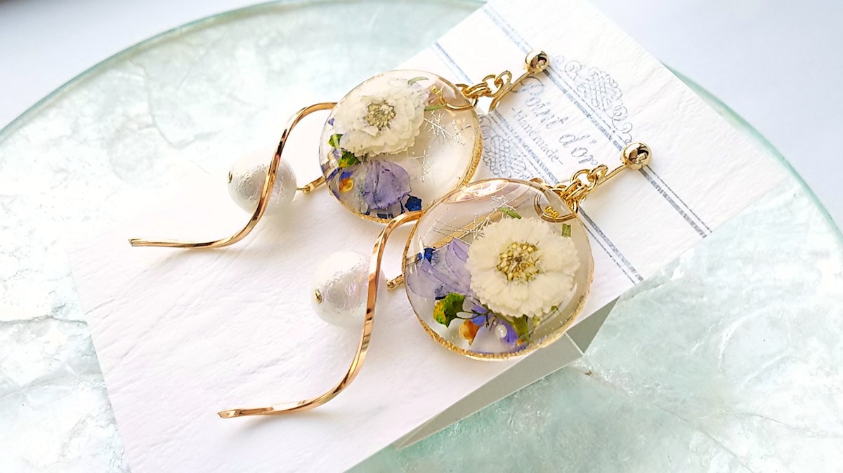 先日、涼しげなお花の耳飾りを作ってみました🌼