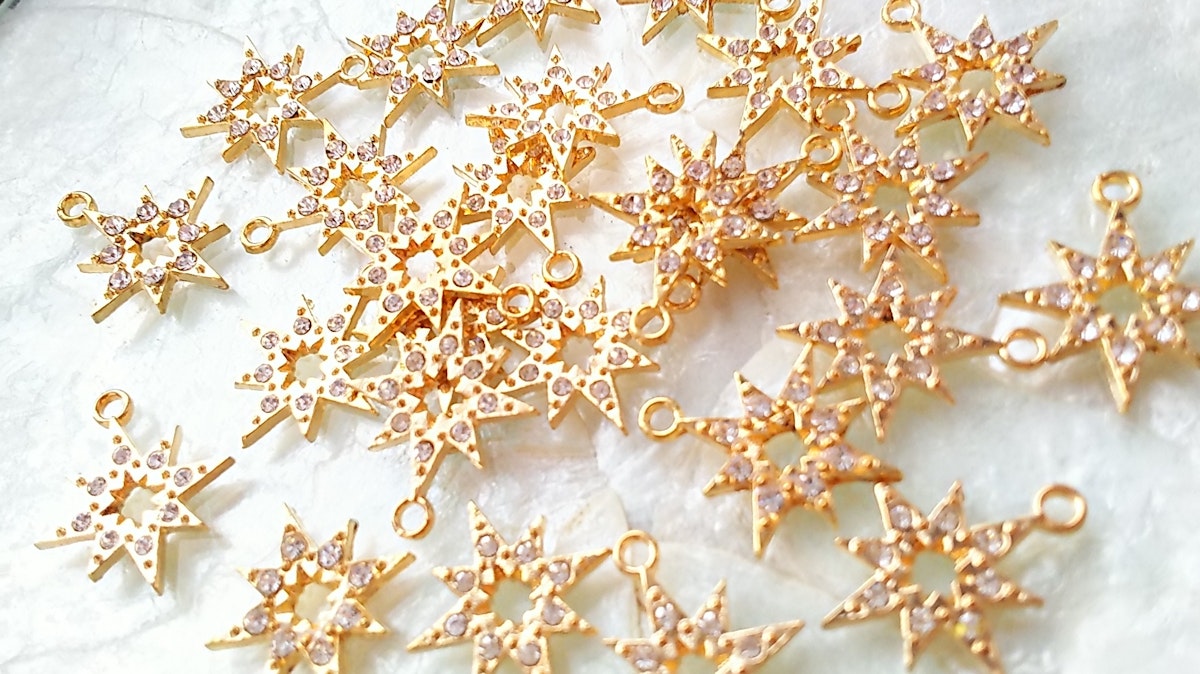 ずっと販売終了してた、三日月シャンデリアに使ってるビジュー付き星チャーム。.:*:・'°☆