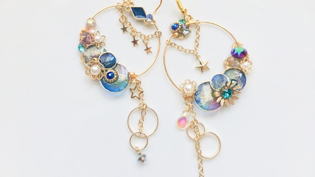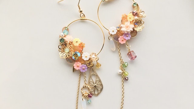 ふんわりとした透明感が美しいフラワーパーツやスパンコール、ヴィンテージパーツを使用しています。