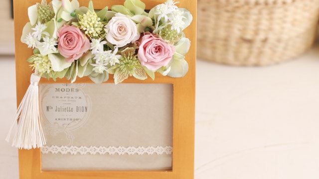 動画「はじめてさんのフォトフレームアレンジ」のレモンイエローバージョンの資材・花材キットです。