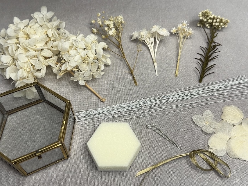 【使用材料】※P=プリザーブドフラワー、D=ドライフラワー