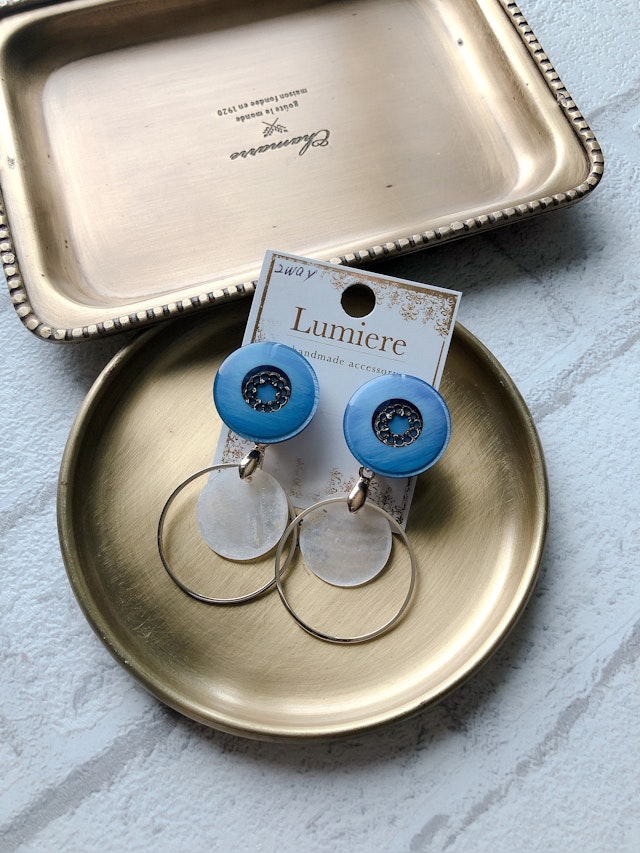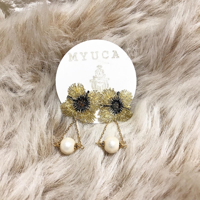 フラワーレース*コットンパール トライアングルチェーンピアス(GOLD)
